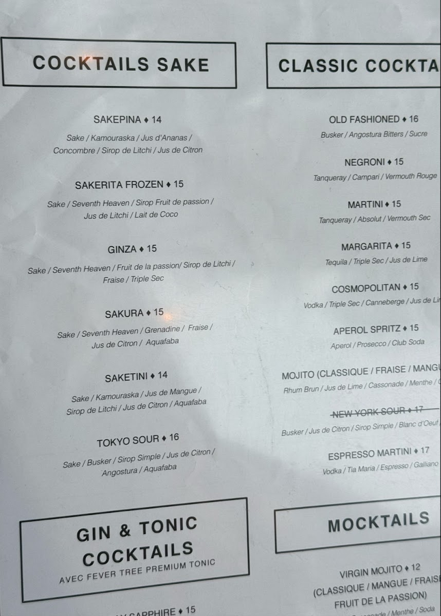 If you’re in the mood for something sweet, don’t miss the Mochi Japonais (Japanese Mochi), a delightful treat that offers a chewy and sweet finish to your meal at just CA$6.00. Pair your culinary adventure with refreshing drinks like the tropical Jus De Noix De Coco (Coconut Juice) or the effervescent San Pellegrino Sparkling Fruit Juice for a full taste experience.